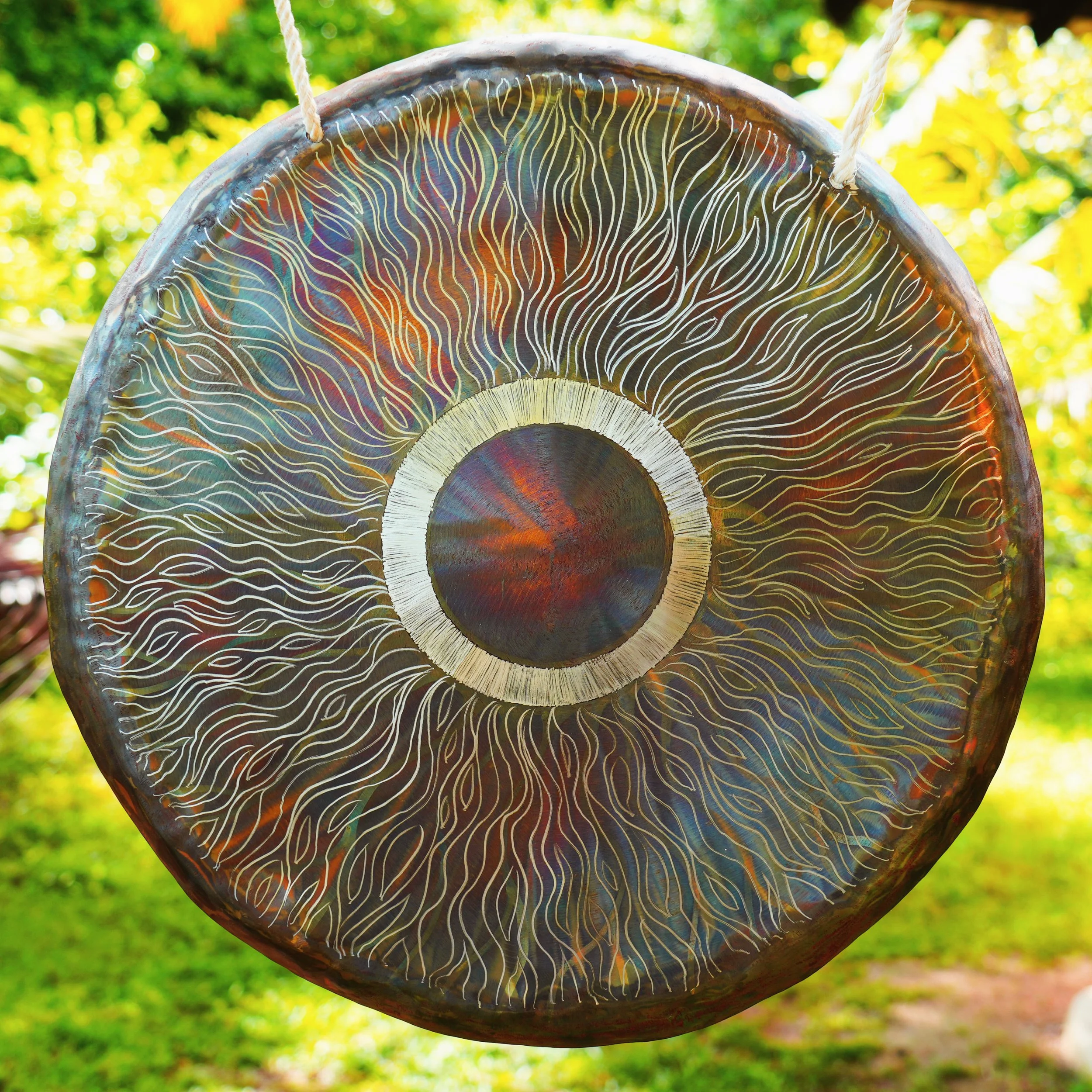 Discover the benefits of mandala symbols in promoting mindfulness and balance. Enhance your home, yoga studio, or healing space with these sacred designs laser engraved on our bronze chau gongs. Available in 24", 28", and 32" sizes, allowing for easy transport.