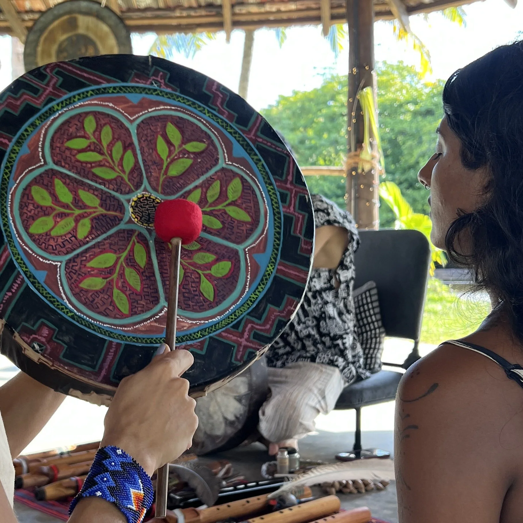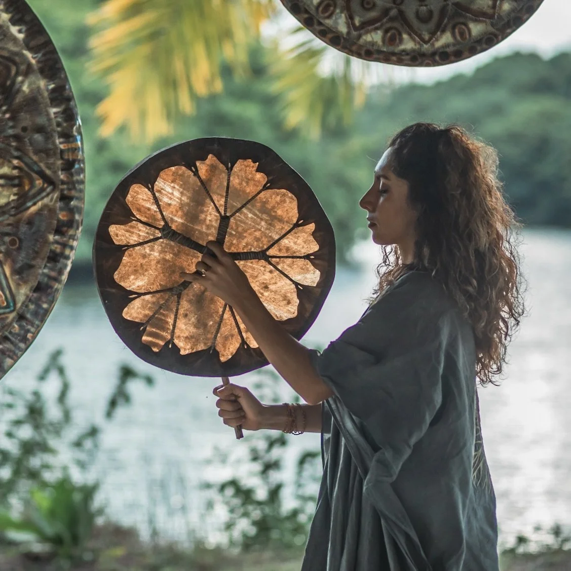 Shamanic drums, steeped in spiritual tradition, trace their origins back thousands of years and are integral to the indigenous cultures of countries like Mongolia, Siberia, and across the Americas. Traditionally played by shamans and healers during rituals and ceremonies, these drums serve as powerful tools for spiritual journeying and connection to the divine. Crafted from natural materials such as wooden frames and animal hides, shamanic drums are known for their deep resonance which mirrors the rhythms of nature. This resonance is believed to facilitate the harmonization of human spirit with the natural world, enhancing the drummer’s ability to mediate between the physical and spiritual realms.